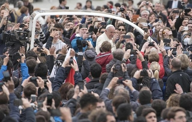 Az utóbbi időben Isten irgalmasságáról elmélkedünk, és ma elérkeztünk a húsvéti szent három naphoz. Erősen átéljük a nagycsütörtököt, a nagypénteket és a nagyszombatot, amelyek segítenek bennünket, hogy egyre mélyebbre hatoljunk hitünk nagy misztériumába, a mi Urunk, Jézus Krisztus feltámadásának titkába. E három napban minden az irgalmasságról szól, mert azt teszi láthatóvá, meddig képes elmenni Isten szeretete. Meghallgatjuk a Jézus utolsó napjairól szóló elbeszélést. János evangélista pedig kulcsot ad ahhoz, hogy megértsük azok legmélyebb értelmét: „Szerette övéit, akik a világban voltak, mindvégig szerette őket” (Jn 13,1). Isten szeretetének nincsenek határai. Ahogyan Szent Ágoston mondta gyakran, ez „mindvégig tartó, végtelen” szeretet. Isten valóban feláldoz értünk mindent, mindannyiunkért, egyáltalán nem kíméli magát. Az a Misztérium, amelyet ezen a nagyhéten imádunk, egy akadályokat nem ismerő, nagy szeretettörténet. Jézus kínszenvedése a világ végéig tart, mert egy olyan történet, amely osztozik az egész emberiség szenvedéseiben, egy állandó jelenlét mindannyiunk személyes életének eseményeiben. A húsvéti szent három nap végeredményben egy olyan szeretetdráma emlékezete, amely azzal a bizonyossággal ajándékoz meg bennünket, hogy sosem leszünk magunkra hagyatva életünk megpróbáltatásaiban.