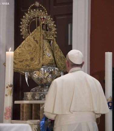 Ferenc pápa szeptember 21-én, hétfőn este a kubai püspökökkel együtt elzarándokolt a Cobrei Szeretet Szűzanyja kegyhelyre, amely mintegy 30 kilométerre található Santiago de Cuba kikötővárostól. Itt őrzik a híres kegyszobrot, amely Máriát ábrázolja a gyermek Jézussal, aki a világot tartja a kezében.