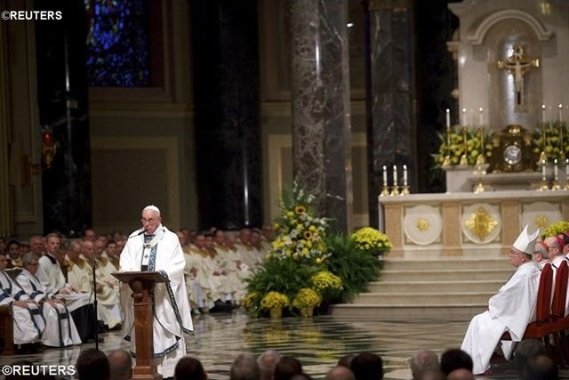 A pápa Család Világtalálkozónak szentelt szombati napjának a programja a Szent Péter és Pál katedrálisban tartott szentmisével kezdődött délelőtt fél 11-kor, ahol a családtalálkozóra érkezett papokkal és szerzetesekkel találkozott.