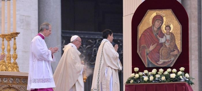 A pápa a hívekkel zsúfolásig megtelt téren a következő imádsággal fordult a Szűzanyához:
