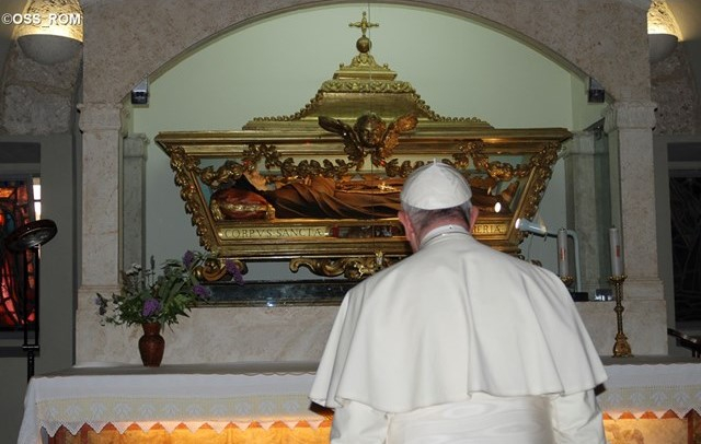 Kedves testvéreim! Ma mindenekelőtt azokat a szavakat szeretném felidézni, amelyeket az ősi hagyomány szerint Szent Ferenc éppen itt mondott ki, az egész nép és a püspökök jelenlétében: „Mindannyiatokat szeretnélek a paradicsomba juttatni!” Mi szebbet is kérhetett volna Assisi szegénykéje, ha nem az üdvösségnek, az Istennel élt örök életnek és a vég nélküli örömnek az ajándékát, amelyet Jézus halálával és feltámadásával szerzett meg nekünk?