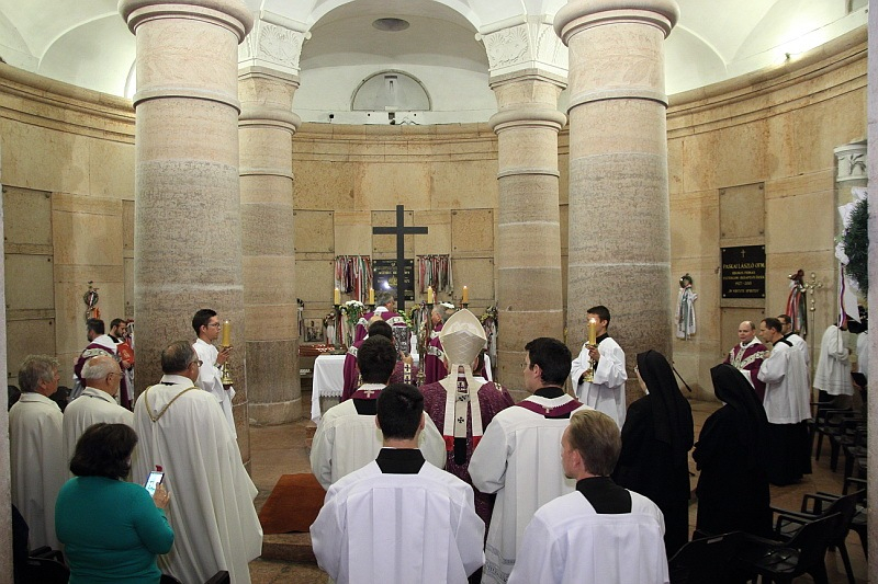 A megyéspüspökkel Németh László általános püspöki helynök, Mogyorósi Márk püspöki titkár és szertartó, valamint Marics István püspöki irodaigazgató, városplébános koncelebrált; a szertartás végén együtt imádkoztak a vértanú püspök sírjánál.