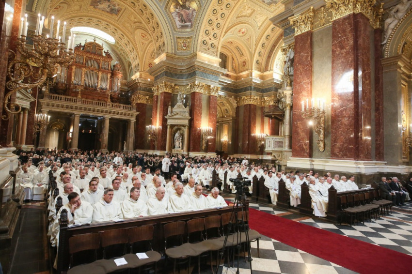 Erdő Péter bíboros, prímás a budapesti Szent István-bazilikában mutatott be krizmaszentelési szentmisét április 13-án d