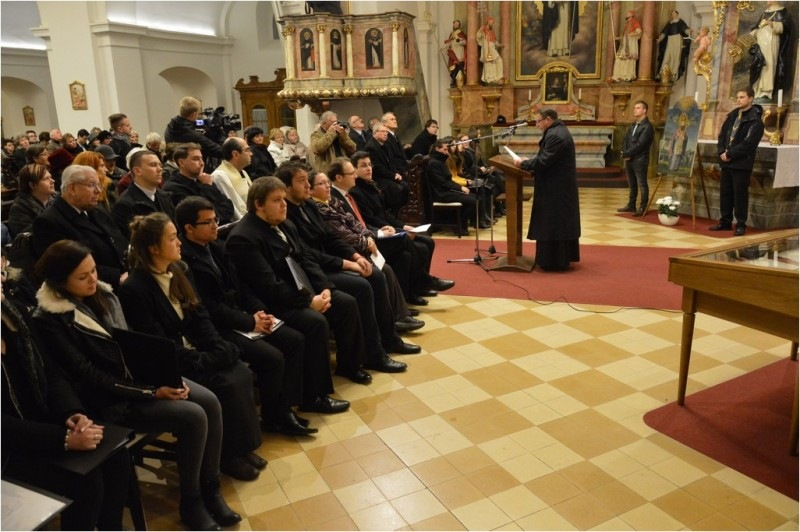 Székely János megyéspüspök köszöntőjében kiemelte: a kép segítségével átélhetjük, hogy közös gyökereink, közös hitünk egy családdá tesznek minket. Felidézte Márton alakját, aki már fiatalon Isten jelenlétében akart élni. „Felzengett benne Isten szeretetének éneke” – fogalmazott Székely János, arra utalva, hogy a programot az Énekek Szent Márton püspök tiszteletérecímű, CD-melléklettel megjelent énekeskönyv bemutatója zárta. A püspök azt kívánta, „az énekek hallgatása segítsen minket is, hogy az életünk szabad, szeretetből fakadó ének legyen Istennek és az emberekért”.