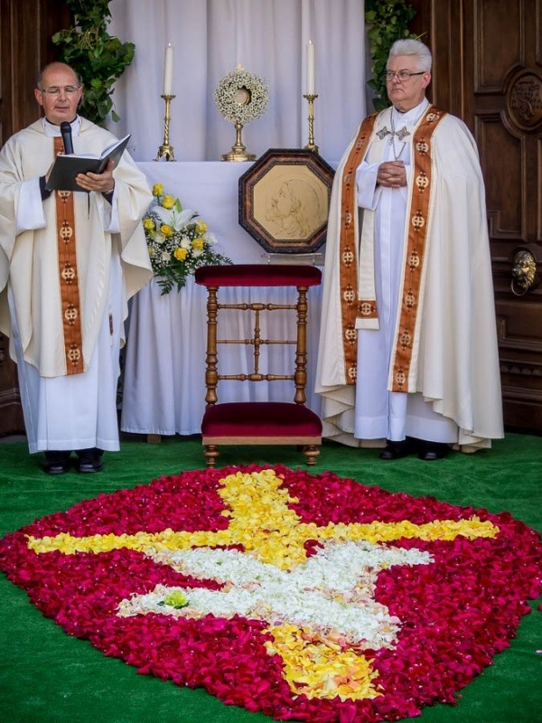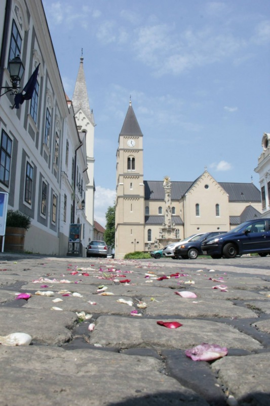 Ősi egyházi hagyományt felelevenítve néhány éve Pécsett nemcsak a székesegyház körül tartanak úrnapi körmenetet, hanem a bazilikától egészen a belvárosi templomig vonulnak a hívek.