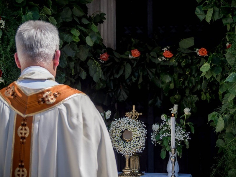 Az Oltáriszentség ünnepén énekekkel, imádsággal valljuk meg örömünket. Krisztus testében és vérében jelen van az életünkben. Ahogy egy szülő gesztusában benne van az egész élete, szeretete, hűsége, úgy egy csöppnyi kenyérben és borban benne van az Isten egész szeretete, jelenvalósága, az emberrel való törődése. Isten jót akar az embernek, táplálja az embert, és ez a táplálék jó – mondta Udvardy György megyéspüspök.